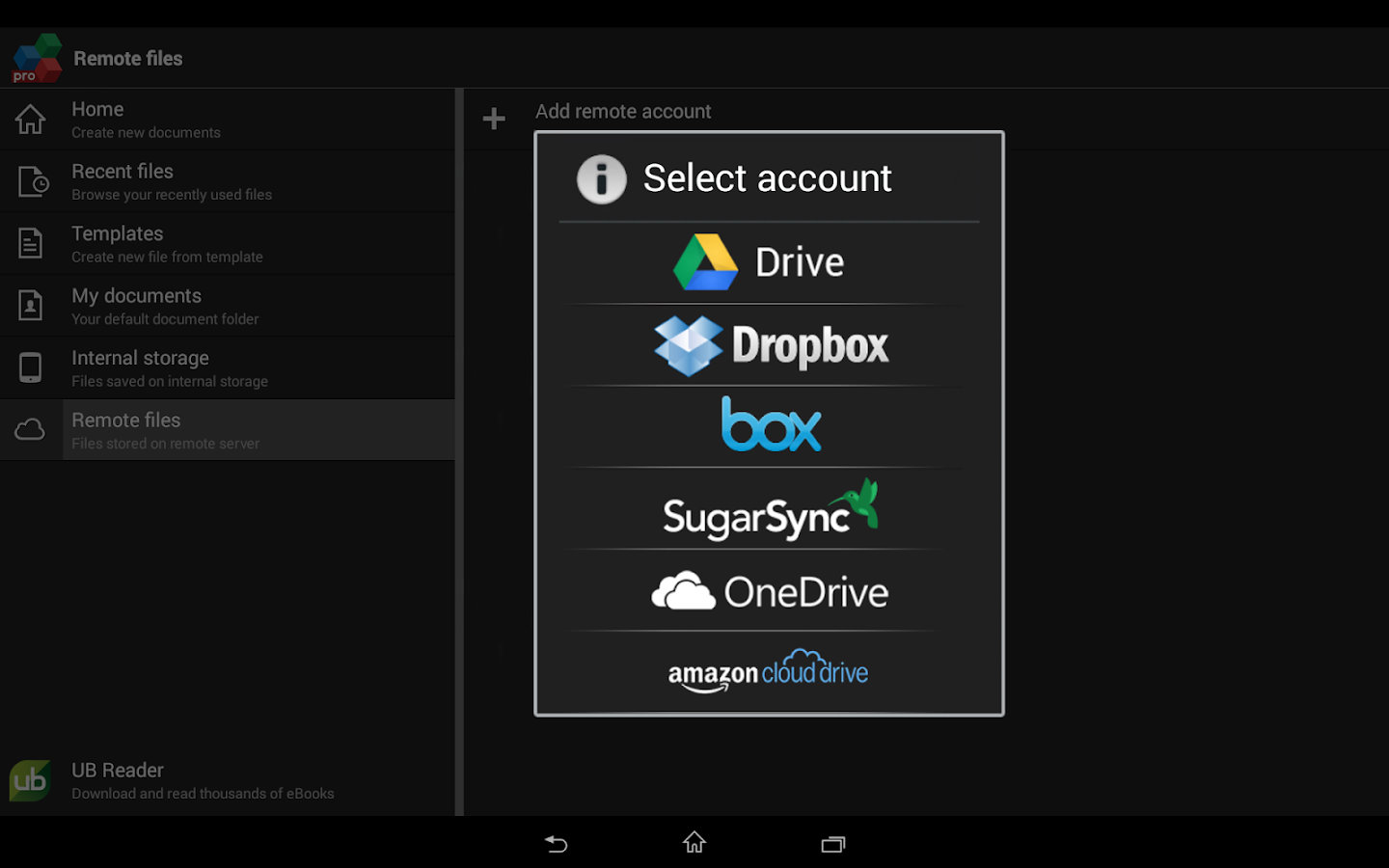 • التكامل مع الخدمات السحابية المختلفة مثل بالغرف، دروببوإكس، محرك جوجل، OneDrive وSugarSync.